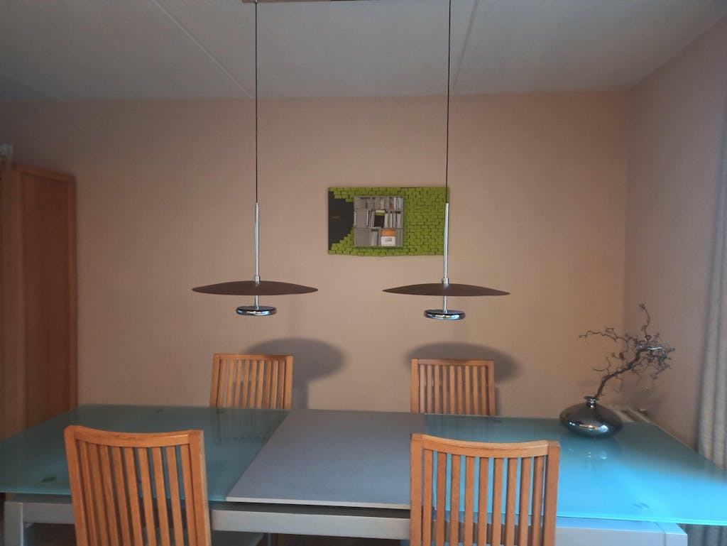 | Maße | Gesamtbreite: 114,5 cm , Leuchtelemente: ⌀ 45 cm , Deckenplatte: 80 cm |